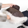 Муфта для рук на коляску Esspero Magda (Натуральный мех) Black - дополнительный аксессуар из овечьей шерсти для транспорта со сплошной ручкой. Наружный материал (эко-кожа) не пропускает влагу, устойчив к загрязнениям. На муфте есть маленький кармашек для ключей или других мелочей (закрывается на кнопку).
